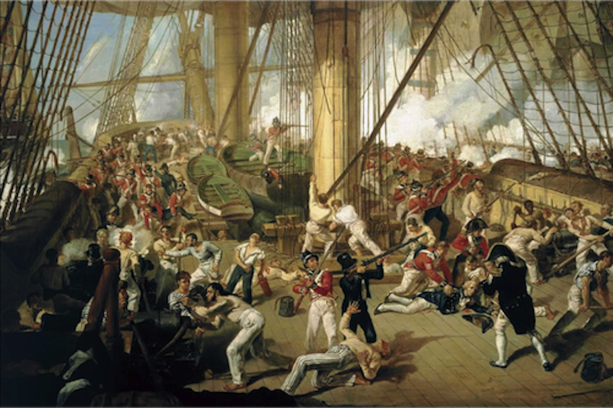 Les Britanniques perdirent quatre cent cinquante marins seulement, dont le meilleur d’entre eux, Horatio Nelson lui-même. L’amiral avait en effet placé son navire Victory à la tête de la première colonne anglaise et avait choisi d’aborder le Redoutable. Dans les combats d’une violence indescriptible qui s’y engagèrent, il fut mortellement blessé.