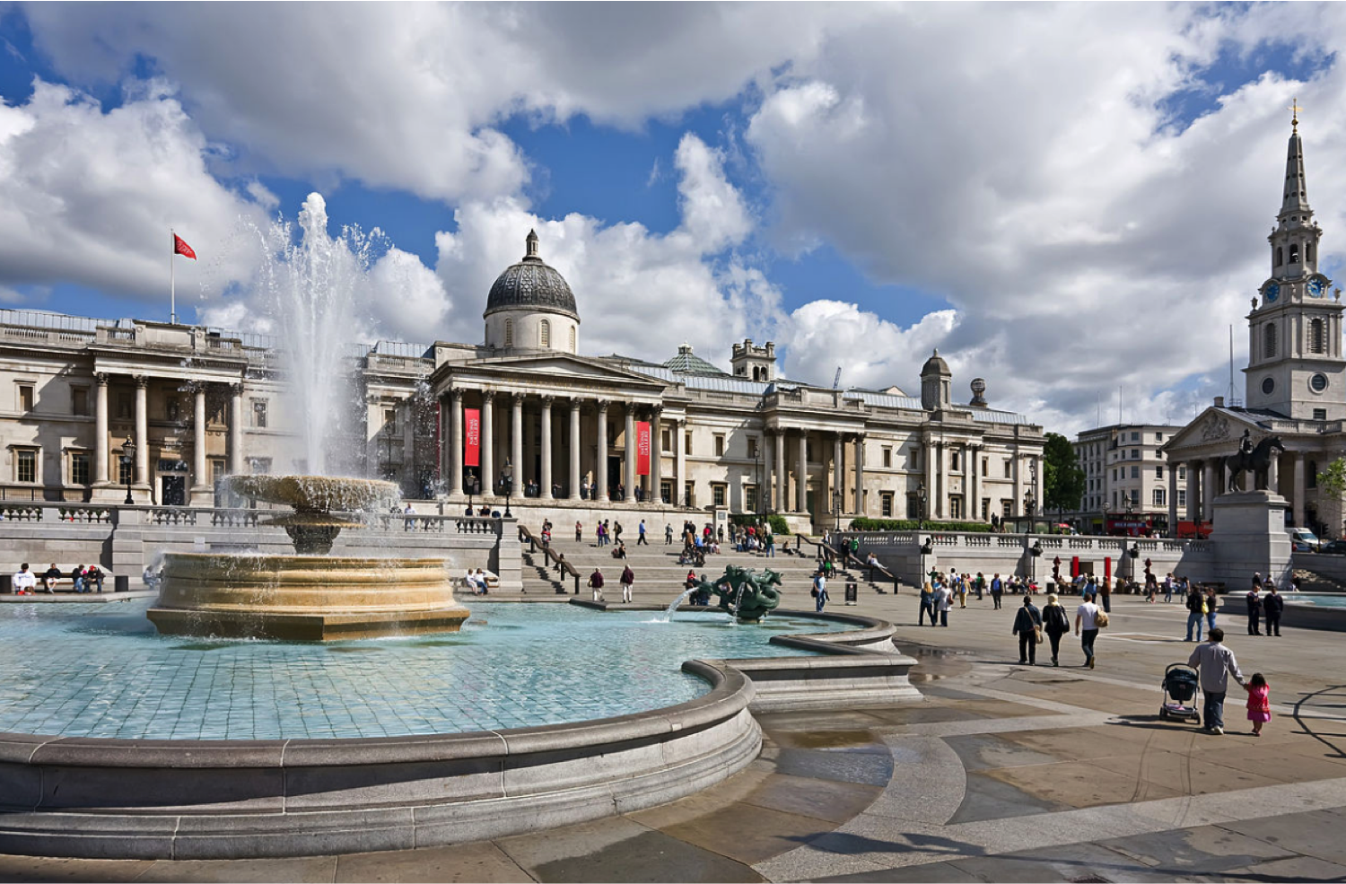 Le nom de cette place commémore la bataille de Trafalgar qui opposa les flottes francoespagnole et britannique en 1805. Elle prend ce nom en 1830. L’aménagement de la place, conçu par l’architecte John Nash, commence dans les années 1820 à l’emplacement des anciennes écuries royales